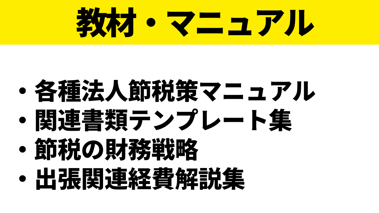 こちらは、各節税策に必要な考え方や導入の手順、または判例などの税務調査対策を簡潔にまとめた動画とテキストのコンテンツです。